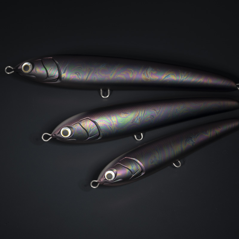青物プラグでは珍しい艶消しトップコートによる仕上げにより反射を抑え、シルエットによるアピールをさらに強化