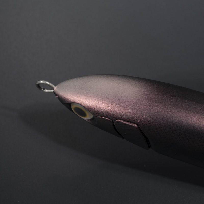 青物プラグでは珍しい艶消しトップコートによる仕上げにより反射を抑え、シルエットによるアピールをさらに強化